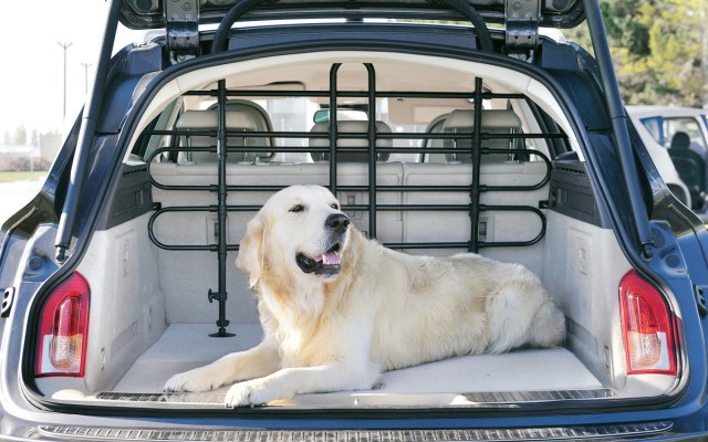 (Photo 1) Une grille de sécurité peut être une solution pour emmener votre chien en voiture. Elle s’installe derrière la banquette arrière du véhicule et est ajustable en hauteur et en largeur pour s'adapter à tous les types de véhicules. Réf. 403014