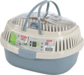 Panier de transport pour petits rongeurs avec grande ouverture par le dessus et système de fermeture sécurisée pour limiter les risques d'évasion.