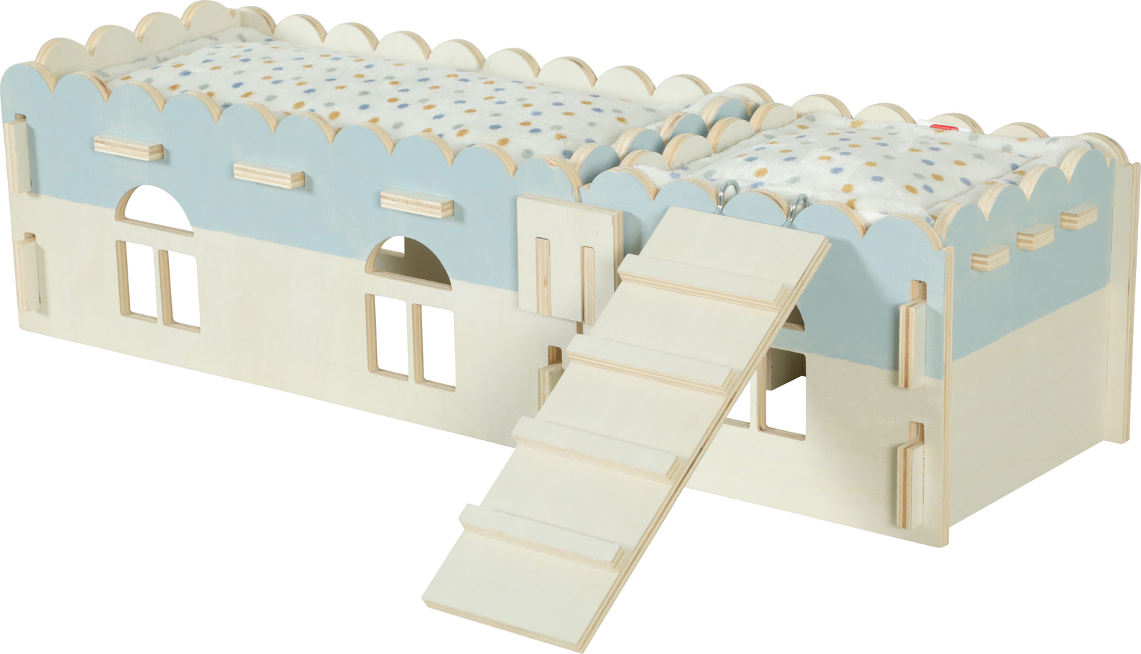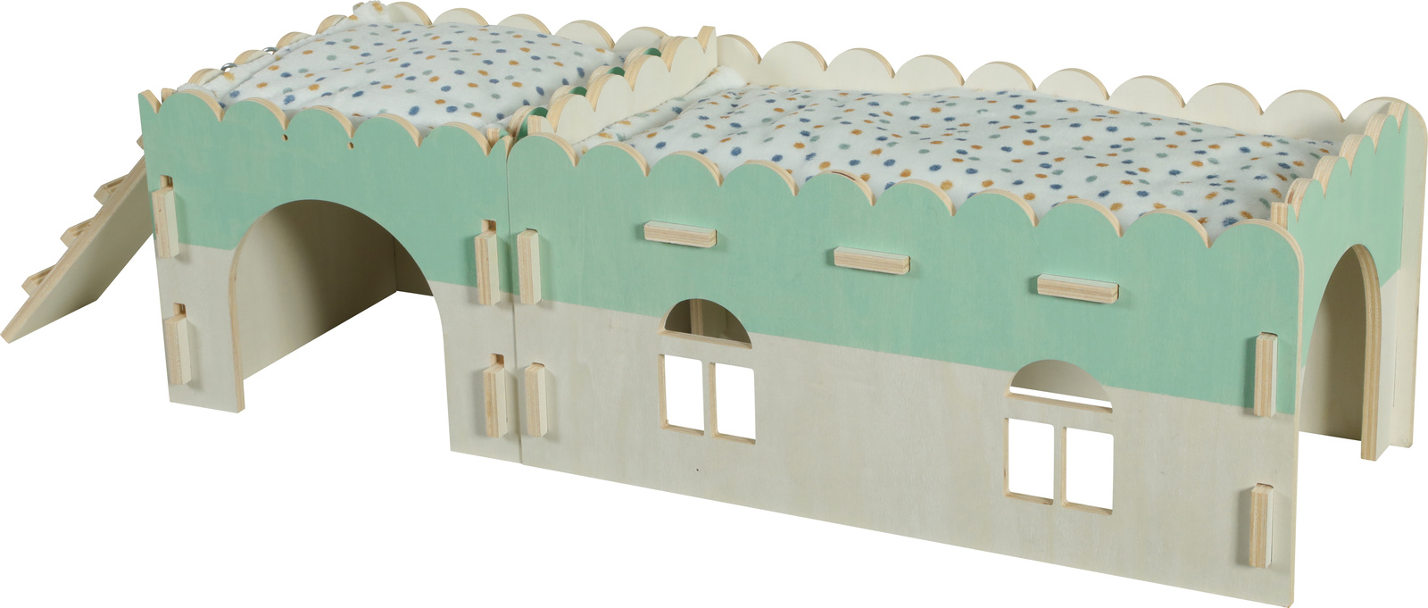 Parfaitement adaptées à l’univers de Neopark ! Avec leur teinte bleu doux assortie à celle du cochon d'inde de Neopark, elles s’intègrent harmonieusement à votre décor. Deux modèles sont disponibles : la petite maison, équipée d’une échelle et d’un petit plaid moelleux sur le toit pour encore plus de confort, et la grande maison, dotée elle aussi d’un plaid accueillant sur son toit.