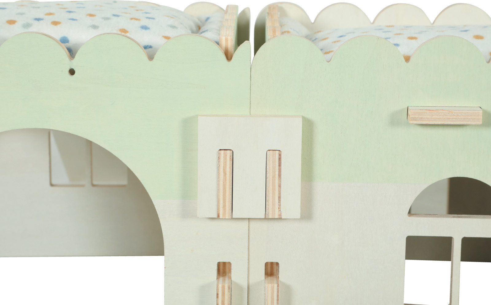 Astucieuses, ces deux maisons sont connectables entre elles pour former un espace de vie plus grand et modulable, idéal pour offrir à votre compagnon un cocon chaleureux et évolutif.